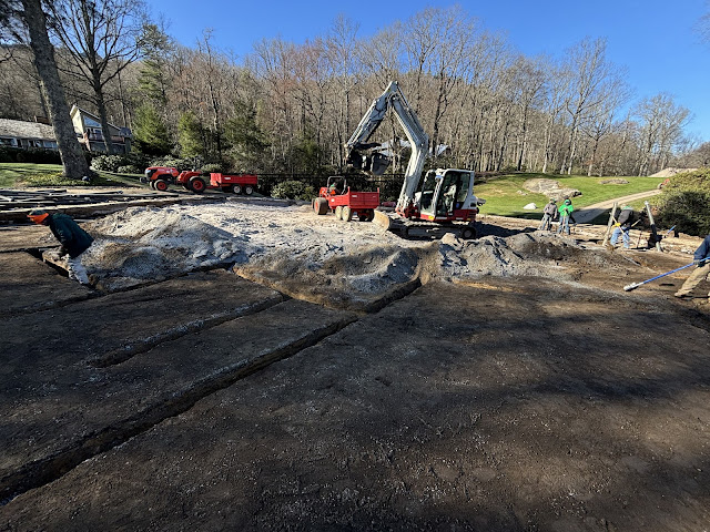 With the sand coming out of the green, we are also working on removing the gravel layer and cleaning out the drainage ditches. This gives you a lot of insight into how a USGA spec green is constructed.